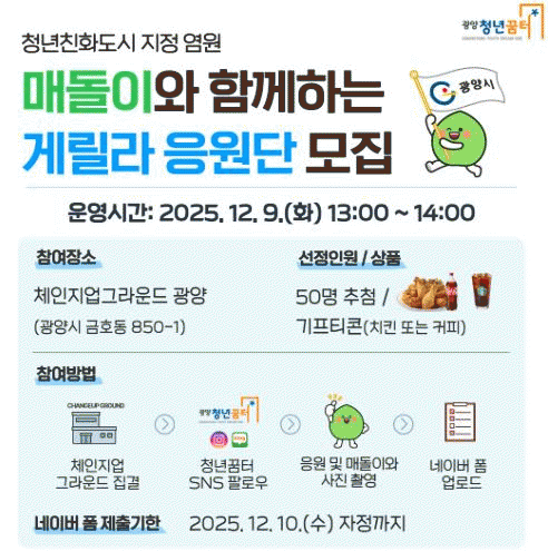 Âü¿©¸¦ Èñ¸ÁÇÏ´Â ½Ã¹ÎÀº Çà»ç ´çÀÏ Ã¼ÀÎÁö¾÷±×¶ó¿îµå ±¤¾ç¿¡¼ °Ô¸±¶ó ÀÀ¿ø¿¡ Âü¿©ÇÑ ÈÄ ¸Åµ¹ÀÌ¿Í ÀÎÁõ»çÁøÀ» ÃÔ¿µÇÏ¸é µÈ´Ù.