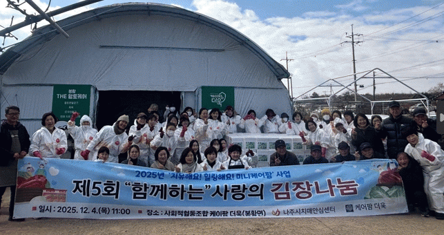 ³ªÁÖ½ÃÄ¡¸Å¾È½É¼¾ÅÍ ÇÁ·Î±×·¥ Âü¿©ÀÚµéÀÌ Á÷Á¢ Àç¹èÇÑ ¹èÃß·Î ±èÄ¡¸¦ ´ã°¡ Ãë¾à°èÃþ 120°¡±¸¿¡ Àü´ÞÇß´Ù.