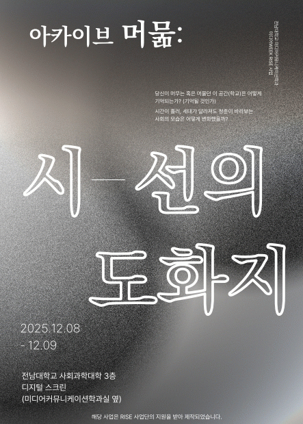 Àü³²´ëÇб³ ¹Ìµð¾îÄ¿¹Â´ÏÄÉÀ̼ÇÇаú(ÇаúÀå ½Å¿ì¿)´Â Çаú Çà»ç ¡®¹Ìµð¾î WEEK¡¯ÀÇ ÀÏȯÀ¸·Î ¾ÆÄ«À̺ê Àü½Ã ¡®¸Ó¹²: ½Ã¼±ÀÇ µµÈÁö¡¯¸¦ 12¿ù 8ÀϺÎÅÍ 9ÀϱîÁö Àü³²´ë ¿ëºÀÄ·ÆÛ½º »çȸ°úÇдëÇÐ 3Ãþ µðÁöÅнºÅ©¸°¿¡¼ °³ÃÖÇÑ´Ù.