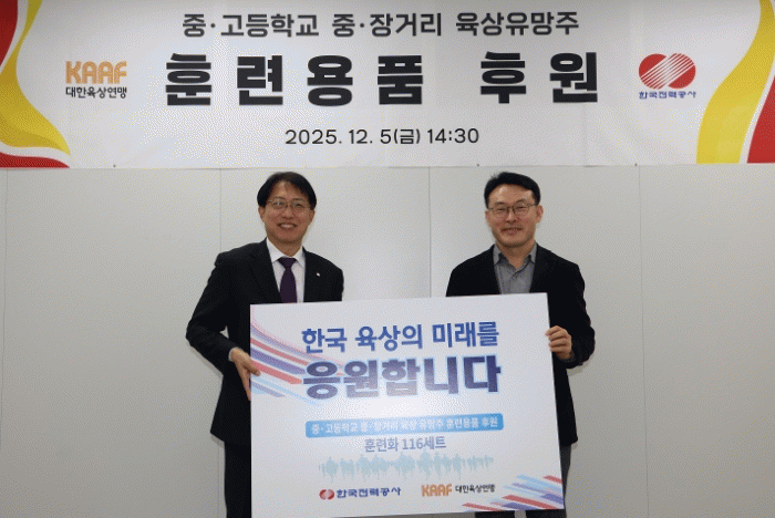 ÇÑÀüÀº 12¿ù 5ÀÏ ¿Ã¸²ÇÈȸ°ü¿¡¼ ´ëÇÑÀ°»ó¿¬¸Í°ú ÇÔ²² Àü±¹ Áß¡¤°íµîÇб³ À°»ó À¯¸ÁÁÖµéÀ» ´ë»óÀ¸·Î ÈÆ·Ã¿ëǰÀ» ÈÄ¿øÇß´Ù. 2017³âºÎÅÍ ÇÑÀüÀº ¸Å³â À°»ó À¯¸ÁÁÖ¿¡°Ô ÈÆ·Ã¿ëǰÀ» Áö¿øÇØ ¿À°í ÀÖÀ¸¸ç, ¿ÃÇØ´Â ´ëÇÑÀ°»ó¿¬¸ÍÀÌ ¼±Á¤ÇÑ ¿ì¼ö Áß¡¤°í±³ À°»ó¼±¼ö 116¸í¿¡°Ô Àü¹® ÈÆ·Ãȸ¦ Àü´ÞÇß´Ù.