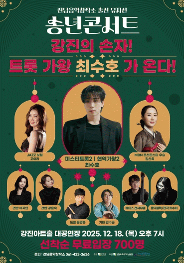 À̹ø °ø¿¬Àº Àü¼® ¹«·á·Î ÁøÇàµÇ¸ç, ÀÚ¼¼ÇÑ »çÇ×Àº Àü³²À½¾ÇâÀÛ¼Ò·Î ¹®ÀÇÇÏ¸é µÈ´Ù.