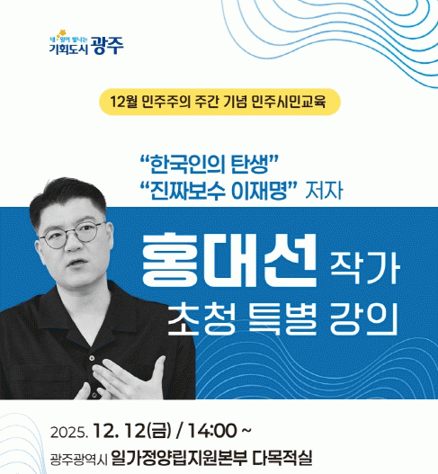 ±¤Áֽô ½Ã¹ÎÀÌ 12¡¤3 ºÒ¹ý°è¾ö¿¡ ´ÜÈ£ÇÏ°Ô ´ëÀÀÇÏ¸ç ¹ÎÁÖÁÖÀǸ¦ ÁöÄѳ½ ¿ª»çÀû °æÇèÀ» ±â³äÇϱâ À§ÇØ 12¿ù 1ÀϺÎÅÍ 12ÀϱîÁö¸¦ ¡®¹ÎÁÖÁÖÀÇ ÁÖ°£¡¯À¸·Î Á¤ÇØ ¿î¿µÇϰí ÀÖ´Ù. È« ÀÛ°¡ Ư°À» ºñ·ÔÇØ ½ÃÁ¤º¸µµ »çÁøÀü, 5¡¤18±â·Ï°ü °³°ü 10Áֳ⠱â³ä Àü½Ãȸ, Çмú´ëȸ µî ´Ù¾çÇÑ ÇÁ·Î±×·¥À» ¸¶·ÃÇß´Ù.