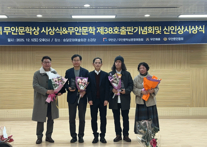 À̳¯ Çà»ç´Â ¹«¾È¹®ÇÐ Á¦38È£ ÃâÆÇ±â³äȸ ¹× ½ÅÀλó ½Ã»ó½Ä°ú ¿¬°èÇØ ÁøÇàµÆÀ¸¸ç, Áö¿ª ¹®ÇÐÀÇ ¼º°ú¿Í È帧À» Áý¾àÀûÀ¸·Î Á¶¸ÁÇÏ´Â ÀÚ¸®°¡ µÆ´Ù.