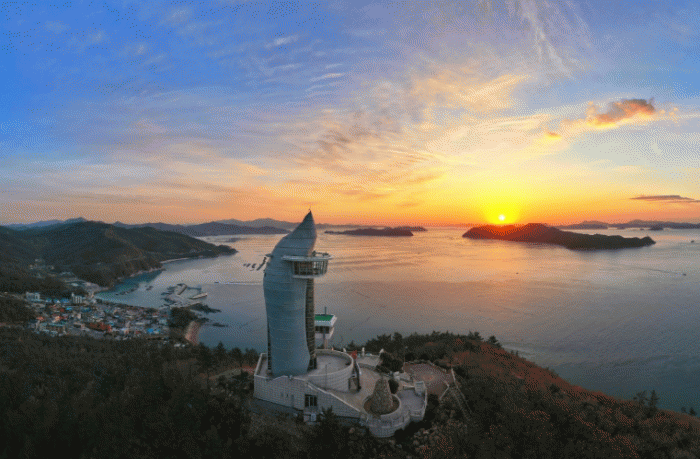 ÇØ³²±ºÀº ÇѹݵµÀÇ ½ÃÀÛÀÌÀÚ ³¡À» »ó¡Çϴ¡®¶¥³¡Àü¸Á´ë¡¯°¡ ƯÈ÷ ÁÁÀº Æò°¡¸¦ ¹Þ¾Ò´Ù. ¶¥³¡¹Ù´Ù¸¦ ¸¶ÁÖº¸°í ÀÖ´Â »çÀÚºÀ Á¤»ó¿¡´Â ȶºÒ ¸ð¾çÀÇ ¶¥³¡Àü¸Á´ë°¡ Á¶¼ºµÇ¾î ÀÖ´Ù.