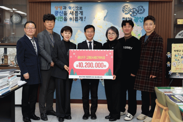 Áö³ 27ÀÏ ±¸Ã» 1Ãþ Ä«ÆäȦ´õ¿¡¼ ÀÏÀÏ ¸í¿¹Á¡ÀåÀ» Çß´ø Á¤¼±±³ ´ë¸íǪµå½Ã½ºÅÛ¢ß ´ëÇ¥°¡ ¿¬°èÇÑ 49¸íÀÇ ±â¾÷ÀÎÀÌ ±¤»ê±¸¿¡ °íÇâ»ç¶û±âºÎ±Ý ÃÑ 1,020¸¸ ¿øÀ» Àü´ÞÇß´Ù.