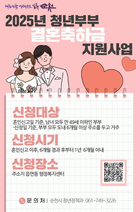 2026³â û³âºÎºÎ °áÈ¥ÃàÇÏ±Ý Áö¿ø»ç¾÷ ½ÅûÀº ÁÖ¼ÒÁö °üÇÒ À¾¸éµ¿ ÇàÁ¤º¹Áö¼¾ÅÍ ¹æ¹® ¶Ç´Â ¿Â¶óÀÎ(Àü³²¾ÆÀÌÅå)À» ÅëÇØ °¡´ÉÇϸç, ±âŸ ÀÚ¼¼ÇÑ »çÇ×Àº ¼øÃµ½Ãû ȨÆäÀÌÁö¿¡¼ È®ÀÎÇÒ ¼ö ÀÖ´Ù.