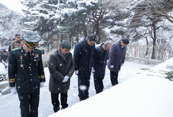 ¿ì½ÂÈñ ¿µ¾Ï±º¼ö¸¦ Æ÷ÇÔÇÑ °øÁ÷ÀÚ¿Í º¸ÈÆ´ÜüÀå, ±â°ü¡¤»çȸ´ÜüÀå µîÀº À̳¯ ¼ø±¹¼±¿°ú È£±¹¿µ·ÉÀÇ ³ÌÀ» ±â¸®°í, Èñ»ýÁ¤½ÅÀ» µÇ»õ±â´Â ½Ã°£À¸·Î ¿ÃÇØÀÇ ¹®À» ¿¾ú´Ù.