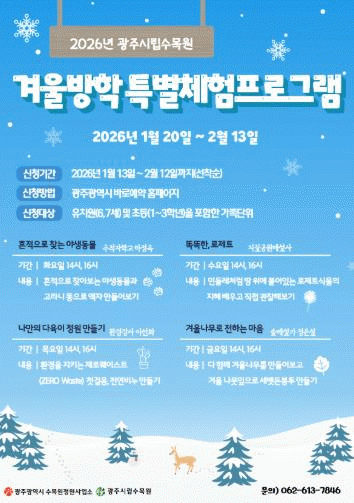 °¢ ÇÁ·Î±×·¥Àº Âü¿© ¾î¸°À̵éÀÌ °Ü¿ï¹æÇÐ µ¿¾È ÀÚ¿¬ °üÂû¡¤»ýÅ ÇнÀ¡¤¸¸µé±â µîÀ» °¡Á·°ú ÇÔ²²Çϸç ÀÚ¿¬°úÀÇ Ä£¹Ð°¨À» ³ôÀÏ ¼ö ÀÖµµ·Ï ±âȹÇß´Ù.
