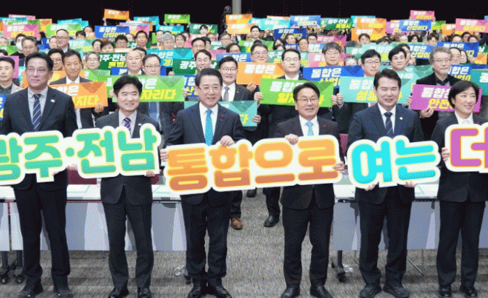 Àü¶ó³²µµ¿Í ±¤ÁÖ±¤¿ª½Ã´Â 16ÀÏ ¿ÀÈÄ ±è´ëÁßÄÁº¥¼Ç¼¾ÅÍ¿¡¼ ½Ã¡¤µµ¹ÎÀÇ ¶æ°ú ¿ª·®À» Çϳª·Î °áÁýÇÒ ¡®±¤ÁÖ¡¤Àü³² ÇàÁ¤ÅëÇÕ ÃßÁø ¹ü½Ãµµ¹Î ÇùÀÇȸ¡¯ ¹ß´ë½ÄÀ» ¿°í, ´ëÇѹα¹ ÃÖÃÊÀÇ ÅëÇÕ ±¤¿ªÁö¹æÁ¤ºÎ ź»ýÀ» À§ÇÑ ¹ü½Ãµµ¹Î Â÷¿øÀÇ ³íÀÇ¿¡ º»°Ý Âø¼öÇß´Ù.