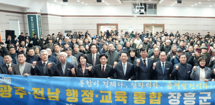 °øÃ»È¸¿¡¼± ±è¿µ·Ï Àü³²µµÁö»ç°¡ ÀåÈﱺ¹Îȸ°üÀ» °¡µæ ¸Þ¿î 500¿© ¸íÀÇ µµ¹Î¿¡°Ô ±¤ÁÖ¡¤Àü³² ÅëÇÕ¿¡ µû¸¥ À塤´Ü±âº° µµ¹Î »îÀÇ º¯È¿Í ±â¾÷ À¯Ä¡, ÀÏÀÚ¸® Ȱ¼ºÈ ³ë·ÂÀ» ÁßÁ¡ ¼³¸íÇß´Ù. µµ¹ÎµéÀº ÅëÇÕ ÀÌÈÄ Áö¿ª Á¤Ã¼¼º °È¿Í ¹ßÀüÀü·« ½ÇÇà, ³ó¾îÃÌ µî ³«ÈÄÁö¿ªÀÇ Á¤Ã¥Àû ¹è·Á Çʿ伺 µî ÀǰßÀ» °¡°¨ ¾øÀÌ Á¦½ÃÇÏ¸ç °ø·ÐÀÇ ÀåÀ» ÆîÃÆ´Ù.