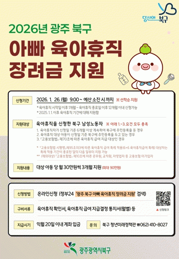 25ÀÏ ºÏ±¸¿¡ µû¸£¸é ¿À´Â 26ÀϺÎÅÍ ¡®2026³â ¾Æºü À°¾ÆÈÞÁ÷ Àå·Á±Ý¡¯ ½ÅûÀÌ ½ÃÀ۵ȴÙ.