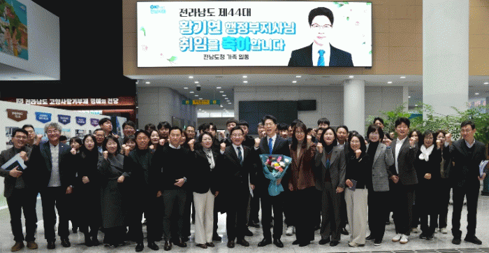 Ȳ±â¿¬ ºÎÁö»ç´Â ¡°°íÇâ ¹ßÀüÀ» À§ÇØ ´Ù½Ã ÀÏÇÒ ±âȸ¸¦ °®°Ô µÅ ¿µ±¤½º·´´Ù¡±¸ç ¡°Àü³²¡¤±¤ÁÖÀÇ ¿ª»çÀûÀÎ ´ëÅëÇÕ°ú AI¡¤¿¡³ÊÁö ¼öµµ ´ëµµ¾à ±âƲ ¸¶·ÃÀ» À§ÇØ Á÷¿øµé°ú ÇÔ²² ¸Ó¸®¸¦ ¸Â´ë¸é¼ ÃÖ¼±À» ´ÙÇϰڴ١±°í Æ÷ºÎ¸¦ ¹àÇû´Ù.
