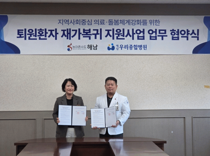 ÇØ³²±º°ú ÇØ³²Á¾ÇÕº´¿ø(¿øÀå ±èµ¿±¹), ÇØ³²¿ì¸®Á¾ÇÕº´¿ø(¿øÀå ±è¿Á¹Î)Àº Áö³ 6ÀÏ¡®Åð¿ø È¯ÀÚ Àç°¡ º¹±Í Áö¿øÀ» À§ÇÑ ¾÷¹« Çù¾à¡¯À» ü°áÇß´Ù. À̹ø Çù¾àÀº Àü¹® ÀÇ·á »çȸº¹Áö»ç°¡ »óÁÖÇÏ´Â Áö¿ª ÀÇ·á±â°ü°ú Çù·ÂÇØ Åð¿ø Á÷ÈÄ ¹ß»ýÇÒ ¼ö Àִ¡®µ¹º½ °ø¹é¡¯À» ¸Þ¿ì±â À§ÇØ ¸¶·ÃµÆ´Ù.