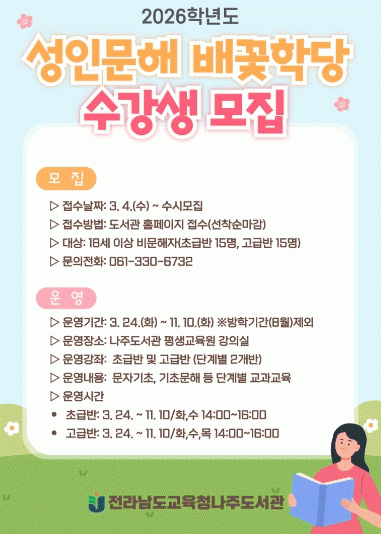 ¼ö° ½ÅûÀº 3¿ù 4ÀϺÎÅÍ ½ÃÀ۵Ǹç, ±³À° Èñ¸ÁÀÚ´Â Àü¶ó³²µµ±³À°Ã»³ªÁÖµµ¼°ü ȨÆäÀÌÁö¸¦ ÅëÇØ ½ÅûÇÒ ¼ö ÀÖ´Ù