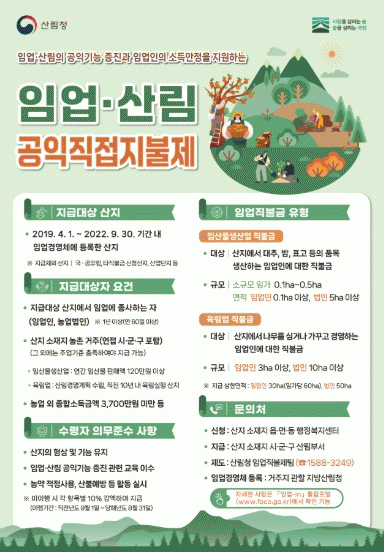 ÀÓ¾÷Á÷ºÒÁ¦´Â »ê¸²ÀÇ °øÀÍÀû ±â´ÉÀ» ÁõÁøÇϰí ÀÓ¾÷ÀÎÀÇ ¼Òµæ ¾ÈÁ¤À» µµ¸ðÇϱâ À§ÇØ ¸¶·ÃµÈ Á¦µµ´Ù. Áö±Þ ´ë»ó »êÁö¿¡¼ ´ëÃß?È£µÎ?¹ã µî Àӻ깰À» »ý»êÇϰųª, ³ª¹«¸¦ ½É°í °¡²Ù´Â À°¸²¾÷¿¡ Á¾»çÇÏ´Â ÀÓ¾÷Àο¡°Ô Áö±ÞÇÑ´Ù.