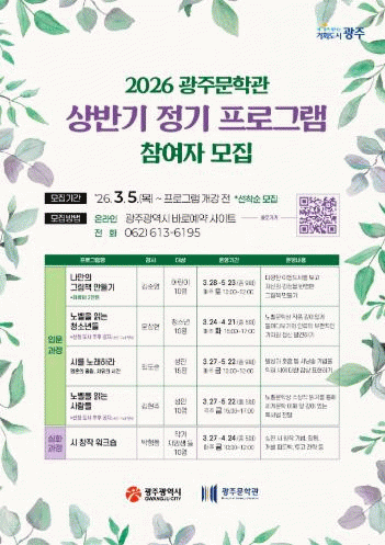 »ó¹Ý±â ÇÁ·Î±×·¥Àº 3¿ùºÎÅÍ 5¿ù±îÁö ¾î¸°ÀÌ¡¤Ã»¼Ò³â¡¤¼ºÀΡ¤ÀÛ°¡ Áö¸Á»ý µî Àü ¼¼´ë¸¦ ´ë»óÀ¸·Î ¡ã±×¸²Ã¥ ¸¸µé±â ¡ã³ëº§¼ö»óÀÛ Àб⠡ã½Ã ³¶¼Û ¡ã½Ã âÀÛ µî 5°³ °úÁ¤À¸·Î ±¸¼ºµÆ´Ù.