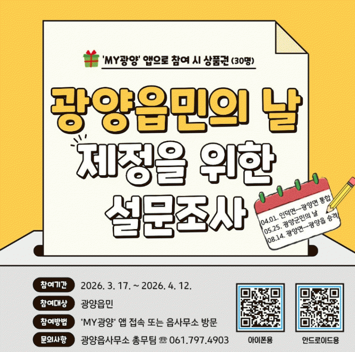 ¼³¹®Á¶»ç´Â ¸ð¹ÙÀÏ ¾Û ¡®MY±¤¾ç¡¯À» ÅëÇØ Âü¿©ÇÒ ¼ö ÀÖÀ¸¸ç, È«º¸¹°¿¡ ¾È³»µÈ QR Äڵ带 ÀÌ¿ëÇØ ¾ÛÀ» ³»·Á¹ÞÀº µÚ ¼³¹®¿¡ Âü¿©ÇÏ¸é µÈ´Ù.