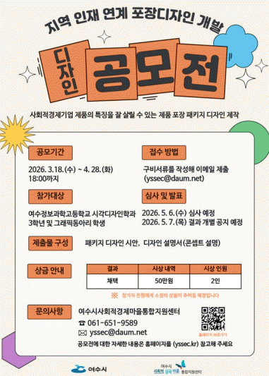 ¿©¼ö½Ã»çȸÀû°æÁ¦¸¶À»ÅëÇÕÁö¿ø¼¾ÅÍ´Â °ø¸ðÀü ÃßÁø¿¡ ¾Õ¼ Áö³ 17ÀÏ ¿©¼öÁ¤º¸°úÇаíµîÇб³ µðÀÚÀÎÇаú ÇлýµéÀ» ´ë»óÀ¸·Î ¼³¸íȸ¸¦ °³ÃÖÇß´Ù.