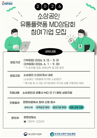 »ó´ãȸ Âü¿©¸¦ Èñ¸ÁÇÏ´Â ¼Ò»ó°øÀÎÀº Çѱ¹Áß¼Òº¥Ã³±â¾÷À¯Åë¿øÀÌ ¿î¿µÇÏ´Â ÆÇ·ÎÁ¤º¸ Ç÷§Æû ´©¸®Áý ¡®ÆÇÆÇ´ë·Î¡¯¸¦ ÅëÇØ ½ÅûÇÒ ¼ö ÀÖÀ¸¸ç, ÀÚ¼¼ÇÑ »çÇ×Àº °ø°í¹®¿¡¼ È®ÀÎÇÏ¸é µÈ´Ù.