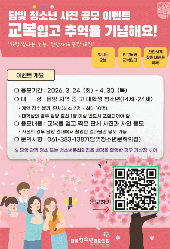 À̹ø °ø¸ðÀüÀº ¡®±³º¹ ÀÔ°í ºû³ª´Â Áö±ÝÀ» ±â³äÇÏ´Ù¡¯¸¦ ÁÖÁ¦·Î, û¼Ò³âµéÀÌ ±³º¹À» Âø¿ëÇÑ ´Üü »çÁø°ú »ç¿¬À» ÇÔ²² Á¦ÃâÇÏ´Â ¹æ½ÄÀ¸·Î ÁøÇàµÈ´Ù.