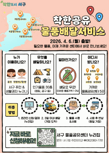 ¼±¸´Â ÇöÀç ÈÁ¤2µ¿, ÈÁ¤4µ¿, µ¿Ãµµ¿, ³ó¼º1µ¿, ¼Ã¢µ¿ µî °ü³» 5°³¼Ò¿¡ ¹°Ç°°øÀ¯¼¾Å͸¦ ±¸Ãà?¿î¿µ ÁßÀ̸ç ÁֹΠ´©±¸³ª »ýȰ¿ëǰÀ» º¸´Ù ½±°í Æí¸®ÇÏ°Ô ÀÌ¿ëÇÒ ¼ö ÀÖ´Â ±â¹ÝÀ» ¸¶·ÃÇß´Ù. À̹ø Äü ½¦¾î ¼ºñ½º´Â ÁÖ¹ÎÀÌ ¹°Ç°°øÀ¯¼¾ÅÍ ´©¸®ÁýÀ» ÅëÇØ ¿øÇÏ´Â ¹°Ç°À» ½ÅûÇϸé 3ÀÏ À̳»¿¡ ÀÌ¿ëÀÚ°¡ ÁöÁ¤ÇÑ °¡Àå °¡±î¿î °øÀ¯¼¾ÅÍ·Î ¹°Ç°À» À̵¿¡¤¹è´ÞÇØÁÖ´Â ¹æ½ÄÀ¸·Î ¿î¿µµÈ´Ù. ÀÌ¿¡ µû¶ó ÁֹεéÀº ¿©·¯ ¼¾Å͸¦ Á÷Á¢ ã¾Æ´Ù´Ò ÇÊ¿ä ¾øÀÌ »ýȰ±Ç ³» °¡±î¿î °ÅÁ¡¿¡¼ Æí¸®ÇÏ°Ô ¹°Ç°À» ¼ö·ÉÇÒ ¼ö ÀÖ´Ù.