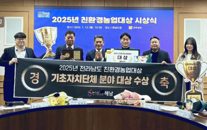 ÀÌ·¯ÇÑ ¼º°ú¸¦ ¹ÙÅÁÀ¸·Î, ÇØ³²±ºÀº Àü¶ó³²µµ°¡ ÁÖ°üÇÑ¡®2025³â ģȯ°æ³ó¾÷´ë»ó¡¯¿¡¼ ´ë»óÀ» ¼ö»óÇß´Ù.