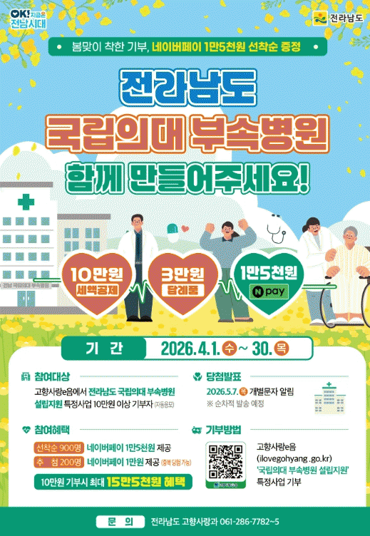 Àü³²µµ´Â 30ÀϱîÁö 4¿ù ÇÑ ´Þ°£ ¡®±¹¸³ÀÇ´ë ºÎ¼Óº´¿ø ¼³¸³ Áö¿ø¡¯ ÁöÁ¤±âºÎ »ç¾÷À» ´ë»óÀ¸·Î °íÇâ»ç¶û±âºÎÁ¦ º½¸ÂÀÌ À̺¥Æ®¸¦ ½Ç½ÃÇÑ´Ù. À̹ø À̺¥Æ®´Â ±âºÎ Âü¿©¸¦ À¯µµÇϰí ÁöÁ¤±âºÎ »ç¾÷¿¡ ´ëÇÑ °ü½ÉÀ» ³ôÀ̱â À§ÇØ ¸¶·ÃµÆ´Ù.