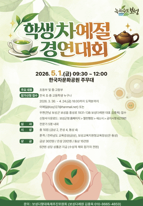 À̹ø ´ëȸ´Â ¿ì¸® ÀüÅë Â÷¹®ÈÀÇ °è½Â°ú û¼Ò³âµéÀÇ ¿Ã¹Ù¸¥ ¿¹Àý ÇÔ¾çÀ» À§ÇØ ¸¶·ÃµÈ Çà»ç·Î, Âü°¡ ½ÅûÀº À̸ÞÀÏ ¶Ç´Â µî±â¿ìÆíÀ» ÅëÇØ °¡´ÉÇϸç, Âü°¡ ´ë»óÀº Àü±¹ ÃÊ¡¤Áß¡¤°íµîÇлýÀÌ´Ù.