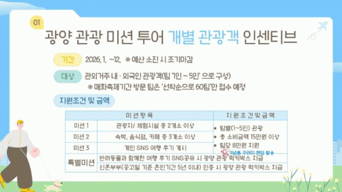 ÀÚ¼¼ÇÑ »çÇ×Àº ±¤¾ç½Ã ¹®È°ü±¤ ´©¸®Áý°ú Àü³²°ü±¤Ç÷§Æû(JN TOUR)¿¡¼ È®ÀÎÇÒ ¼ö ÀÖ´Ù.
