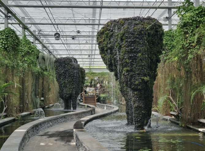 ¿ÃÇØ ¼ö»ý½Ä¹°°üÀº ³»ºÎ ¾ÆÄ¡Çü ±¸Á¶¿¡ ½ÄÀçµÇ¾î ÀÖ´ø Æ¿¶õµå½Ã¾Æ ÀϺθ¦ °í¸ñ³ª¹«·Î À̽ÄÇØ ´õ ÀÚ¿¬½º·¯¿î Á¤±Û ºÐÀ§±â¸¦ ¿¬ÃâÇßÀ¸¸ç, ½Ä¹°°ú ±¸Á¶¹°ÀÌ ¾î¿ì·¯Áø ÀÔüÀûÀÎ °ø°£À¸·Î À籸¼ºÇß´Ù.