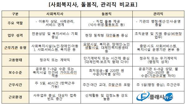 Áö³ 28ÀÏ Áß¾Ó»çȸ¼ºñ½º¿ø ±¹Á¤°¨»ç¿¡¼ À̰³È£ ÀÇ¿øÀº ¡°´ëºÎºÐÀÇ µ¹º½Á÷ ÀηÂÀÌ ´Ü±â°è¾àÁ÷°ú ½Ã°£Á¦ ±Ù·ÎÀÚ·Î °í¿ëµÅ ÀÖÀ¸¸ç, ½ÅüÀû ºÎ´ã°ú °¨Á¤³ëµ¿ °µµ°¡ ³ôÀ½¿¡µµ ºÒ±¸Çϰí Àӱݰú º¹¸®ÈÄ»ý ¼öÁØÀº ¿ÀÈ÷·Á ³·´Ù¡±¸ç ¡°ÀÌ·¯ÇÑ ±¸Á¶´Â ¼÷·ÃµÈ ÀηÂÀÇ ÀÌÅ»°ú ÀæÀº ÀÌÁ÷À¸·Î À̾îÁ®, °á±¹ ¼ºñ½º ǰÁú ÀúÇÏ¿Í µ¹º½°ø¹éÀ¸·Î ±Í°áµÇ°í ÀÖ´Ù¡±°í ÁöÀûÇß´Ù.