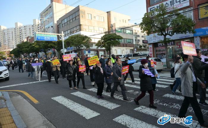 ÇÑÆí Âü¼®ÀÚµéÀº Çà»ç¸¦ ÅëÇØ °áÀǸ¦ ´ÙÁö°í, ¿©¼ö½ÃÀÇȸ¸¦ Ãâ¹ßÇØ KB±¹¹ÎÀºÇà°ú (±¸)¼Û¿ø¹éÈÁ¡, ÇØ¾ç°æÂû¼, ¿©¼öMBC »ï°Å¸®±îÁö À̾îÁö´Â ¾à 1.5km ±¸°£¿¡¼ ¡®¿©¼öMBC ¼øÃµÀÌÀü ¹Ý´ë¡¯ µîÀÇ ±¸È£¸¦ ¿ÜÄ¡¸ç °Å¸® ÇàÁøÀ» ÆîÃÆ´Ù.