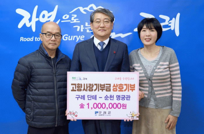 À̹ø »óÈ£ ±âºÎ´Â ±¸·Ê±º »êµ¿¸é ¼ÒÀç ¿Ü½Ä¾÷üÀÎ ´ÜÅ×ÀÇ ³ëÇöÁ¤ ´ëÇ¥¿Í ¼øÃµ½Ã ¸í±Ã°üÀÇ ¹Ú¼ö¿µ ´ëÇ¥°¡ Áö¿ª¹ßÀüÀ» À§ÇÑ ÀÀ¿øÀ» °ø°¨Çϸç ÀÌ·ç¾î Á³À¸¸ç, °¢ 100¸¸¿ø¾¿À» »óÈ£ ±âŹÇÏ¿´´Ù.