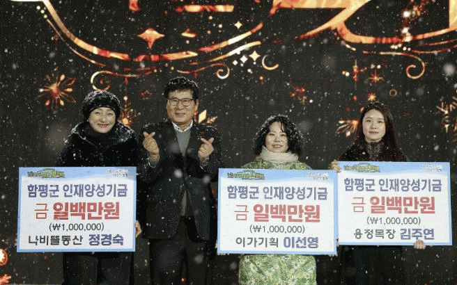 Æó¸·½Ä¿¡¼´Â ³ªºñÃàÁ¦ °æ¿¬´ëȸ ¼ö»óÀÚ ¡®´Þ¶á¡¯°ú ºê¶ó½º¹êµåÀÇ °ø¿¬ÀÌ ÆîÃÄÁ³°í, ÃàÁ¦ Âü¿© ¾÷üÀÎ ¿ëÁ¤¸ñÀ塤À̰¡±âȹ¡¤³ªºñ¶ãµ¿»êÀº ÇÔÆò±º ÀÎÀç¾ç¼º±â±Ý¿¡ 100¸¸ ¿øÀ» °¢°¢ Àü´ÞÇÏ¿© ¿ÂÁ¤À» ÀüÇß´Ù.