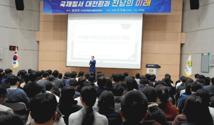 À̳¯ Æ÷·³¿¡¼± °ø¹«¿ø°ú °ü°èÀÚ µî 400¿© ¸íÀÌ Âü¼®ÇØ ±¹Á¦Áú¼ ´ëÀüȯ ½Ã±â¿¡ Àü³²ÀÌ ³ª¾Æ°¡¾ß ÇÒ ¹æÇâ¿¡ ´ëÇØ °í¹ÎÇÏ´Â ½Ã°£À» º¸³Â´Ù.