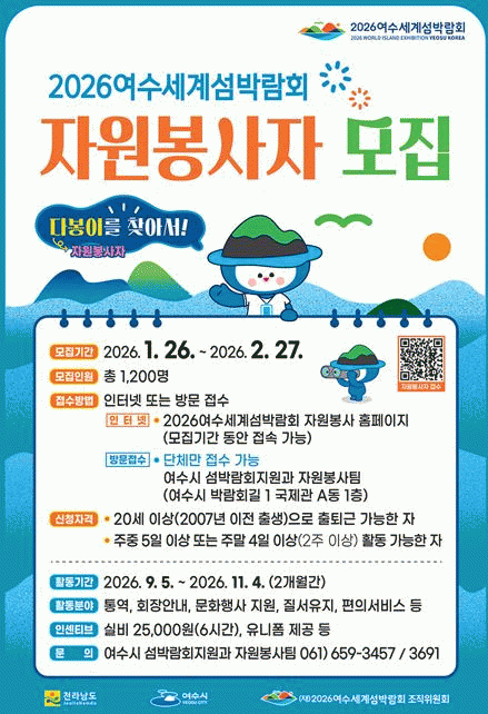ÇÑÆí, ÀÚ¿øºÀ»çÀÚ ½ÅûÀº 2026¿©¼ö¼¼°è¼¶¹Ú¶÷ȸ ÀÚ¿øºÀ»ç ´©¸®ÁýÀ» ÅëÇØ ¿Â¶óÀÎÀ¸·Î Á¢¼öÇÒ ¼ö ÀÖÀ¸¸ç Ȱµ¿¿¡ Âü¿©ÇÑ ´ÙºÀÀÌ¿¡°Ô´Â 1ÀÏ 6½Ã°£ ±âÁØ È°µ¿ ½Çºñ 2¸¸ 5õ ¿øÀÌ Áö±ÞµÉ ¿¹Á¤ÀÌ´Ù.