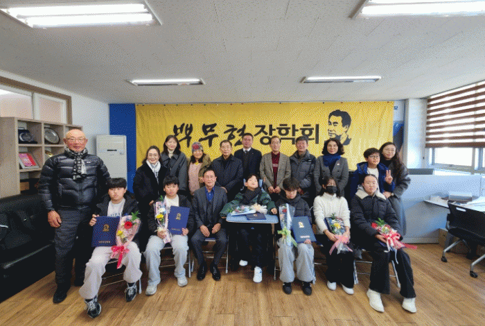 À̳¯ Çà»ç¿¡ ¹é¹«ÇöÀåÇÐȸ ¿À¹«¿µ ÀÌ»çÀå°ú ÀÌ»çµéÀÌ Âü¼®ÇÏ¿© ´Ù¹®È°¡Á¤, ÇѺθð°¡Á¤ µî »çȸÀû º¸»ìÇËÀÌ ÇÊ¿äÇÑ Ã»¼Ò³â 7¸íÀ» ÀåÇлýÀ¸·Î ¼±¹ßÇØ ÀåÇбÝÀ» Àü´ÞÇß´Ù.
