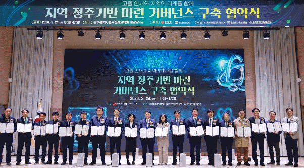 ÀÌÁ¤¼± ±³À°°¨Àº ¡°À̹ø Çù¾àÀº ±¤ÁÖ Á÷¾÷°è°í ÇлýµéÀÌ Áö¿ª¿¡¼ ¹è¿ì°í Ãë¾÷ÇÏ¸ç ¼ºÀåÇÒ ¼ö ÀÖ´Â ±â¹ÝÀ» ÇÔ²² ¸¸µå´Â ¶æ±íÀº Ãâ¹ßÁ¡¡±À̶ó¸ç ¡°Áö¿ª ƯȻê¾÷°ú ¿¬°èÇÑ Á÷¾÷±³À° ¸ðµ¨À» Áö¼ÓÀûÀ¸·Î °íµµÈÇØ ÇлýÀÇ ¹Ì·¡ ¼ºÀå°ú Áö¿ª ¹ßÀüÀÌ ÇÔ²² ÀÌ·ïÁöµµ·Ï Àû±Ø Áö¿øÇϰڴ١±°í ¸»Çß´Ù.