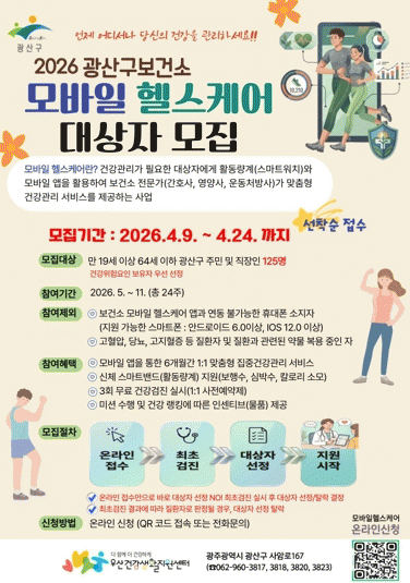 ¼±Á¤µÈ ´ë»óÀÚ¿¡°Ô´Â ¹«·á °Ç°°ËÁø°ú ÃøÁ¤ °á°ú¿¡ µû¶ó ½º¸¶Æ® Ȱµ¿·®°è¸¦ Áö±ÞÇϰųª °³Àαâ±â¸¦ ¿¬µ¿ÇØ »ç¾÷¿¡ Âü¿©ÇÒ ¼ö ÀÖ´Ù.