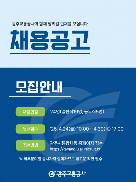 ÀÚ¼¼ÇÑ ³»¿ëÀº ±¤ÁÖ±³Åë°ø»ç ȨÆäÀÌÁö ¡®Ã¤¿ë°ø°í¡¯¿¡¼ È®ÀÎÇϰųª Ãѹ«ÆÀÀ¸·Î ¹®ÀÇÇÏ¸é µÈ´Ù.