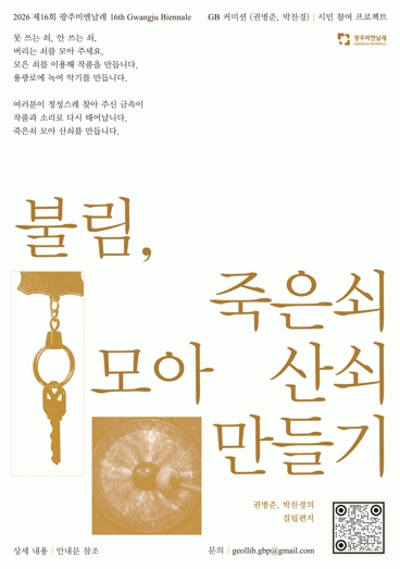 ±¤Áֽô À̹ø ÇÁ·ÎÁ§Æ®ÀÇ ½Ã¹Î Âü¿© È®´ë¸¦ À§ÇØ Áö³ 10ÀϺÎÅÍ ½Ãû 1Ãþ¿¡ ±Ý¼Ó ¼öÁýÇÔÀ» ºñÄ¡, ¿À´Â 5¿ù ¸»±îÁö ¿î¿µÇÑ´Ù. ¼öÁý ´ë»óÀº Àü¼±, ¿¼è, ³ò±×¸©, ³¿ºñ, ĵ µî ´Ù¾çÇÑ ±Ý¼Ó·ù´Ù. Âü¿©ÀÚ¿¡°Ô´Â ºñ¿£³¯·¹Àü½ÃÀå ³» ¡®ºÒ¸²¡¯ ÀÛǰ Àαٿ¡ À̸§À» Ç¥±âÇϰí, Á¦ÀÛµÈ ÀÛǰ À½¿ø µîÀ» Á¦°øÇÒ ¿¹Á¤ÀÌ´Ù.